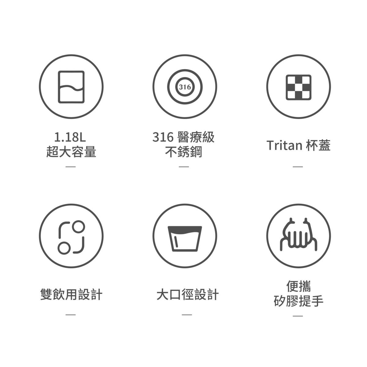 瓶身與瓶蓋材質:316醫療級不銹鋼材質18/10