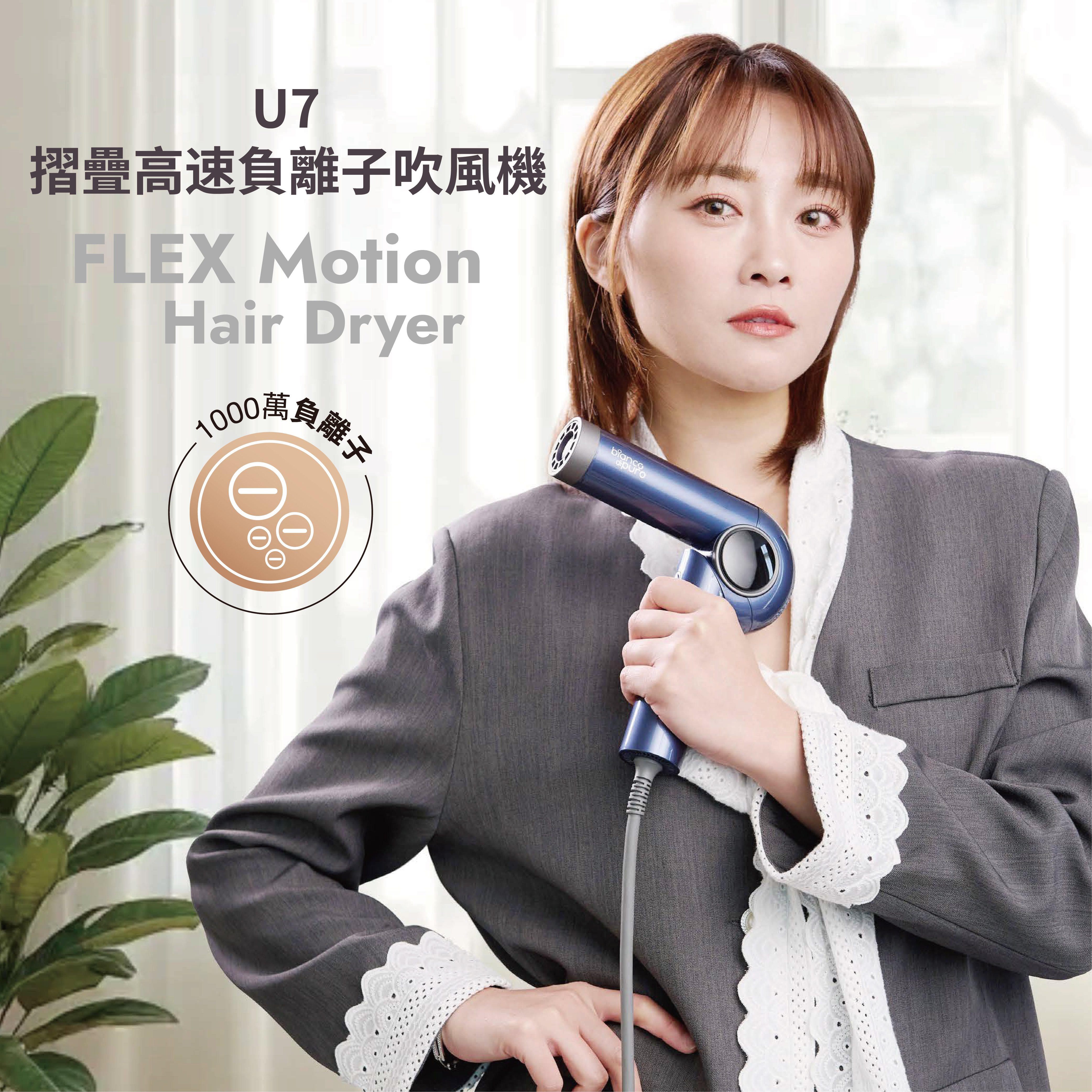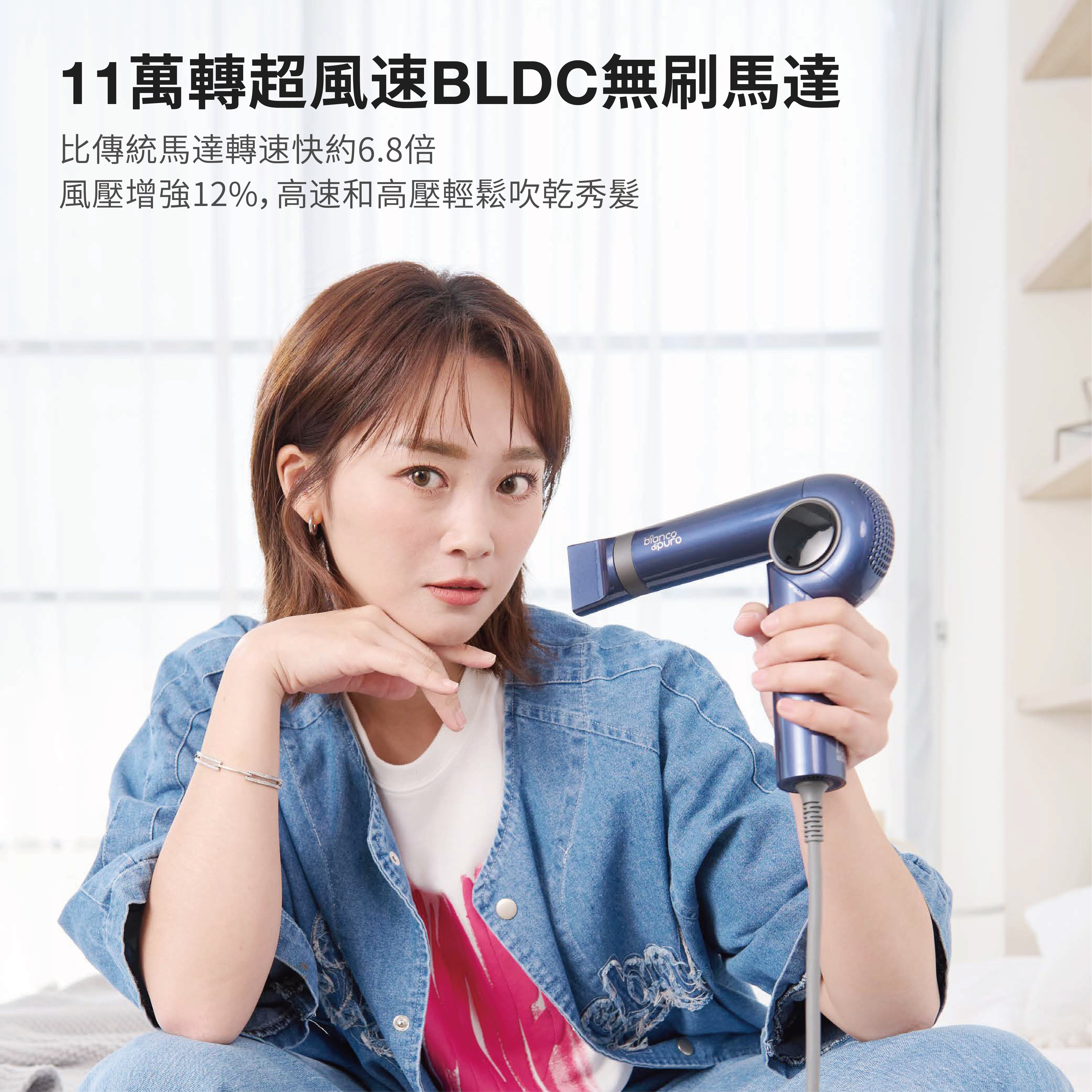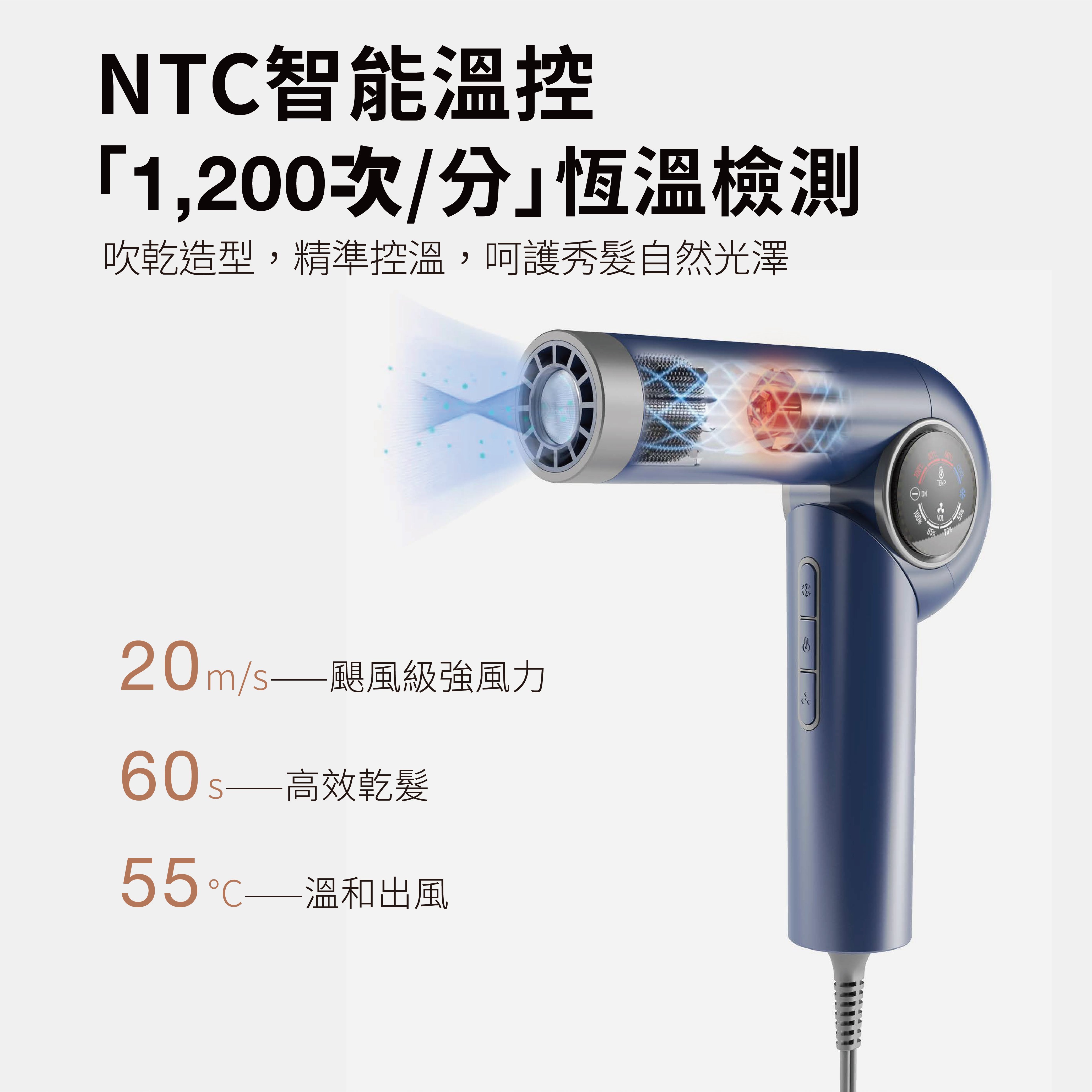 可摺疊設計,外出旅行超方便 11萬轉 DC 無刷馬達 1,000 萬負離子水潤輸出,降低毛躁,呵護頭髮 NTC智能溫控即時監測 340g 超輕量機身 液晶螢幕顯示溫度 16 種吹髮組合(風速 × 風溫)提高自由調整度