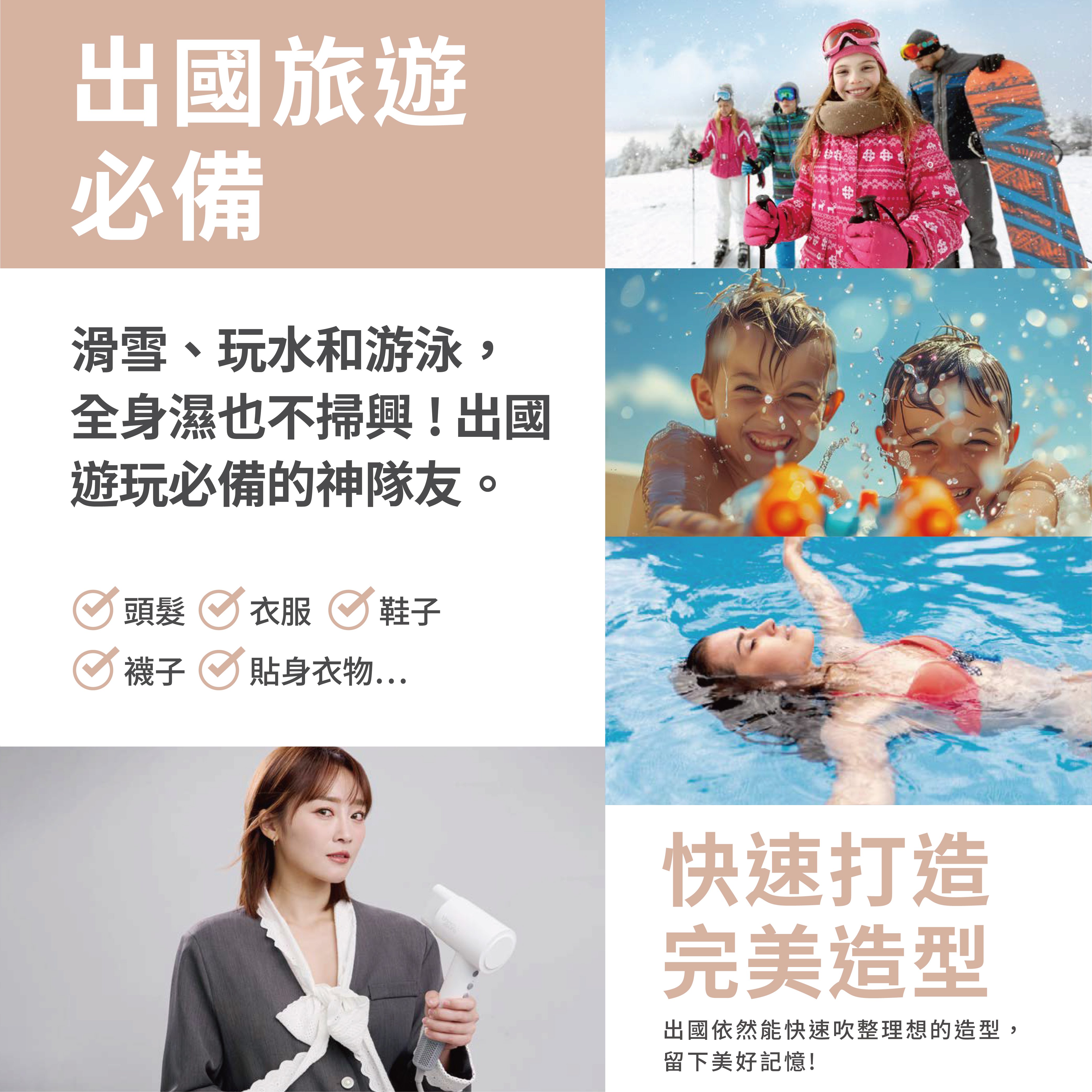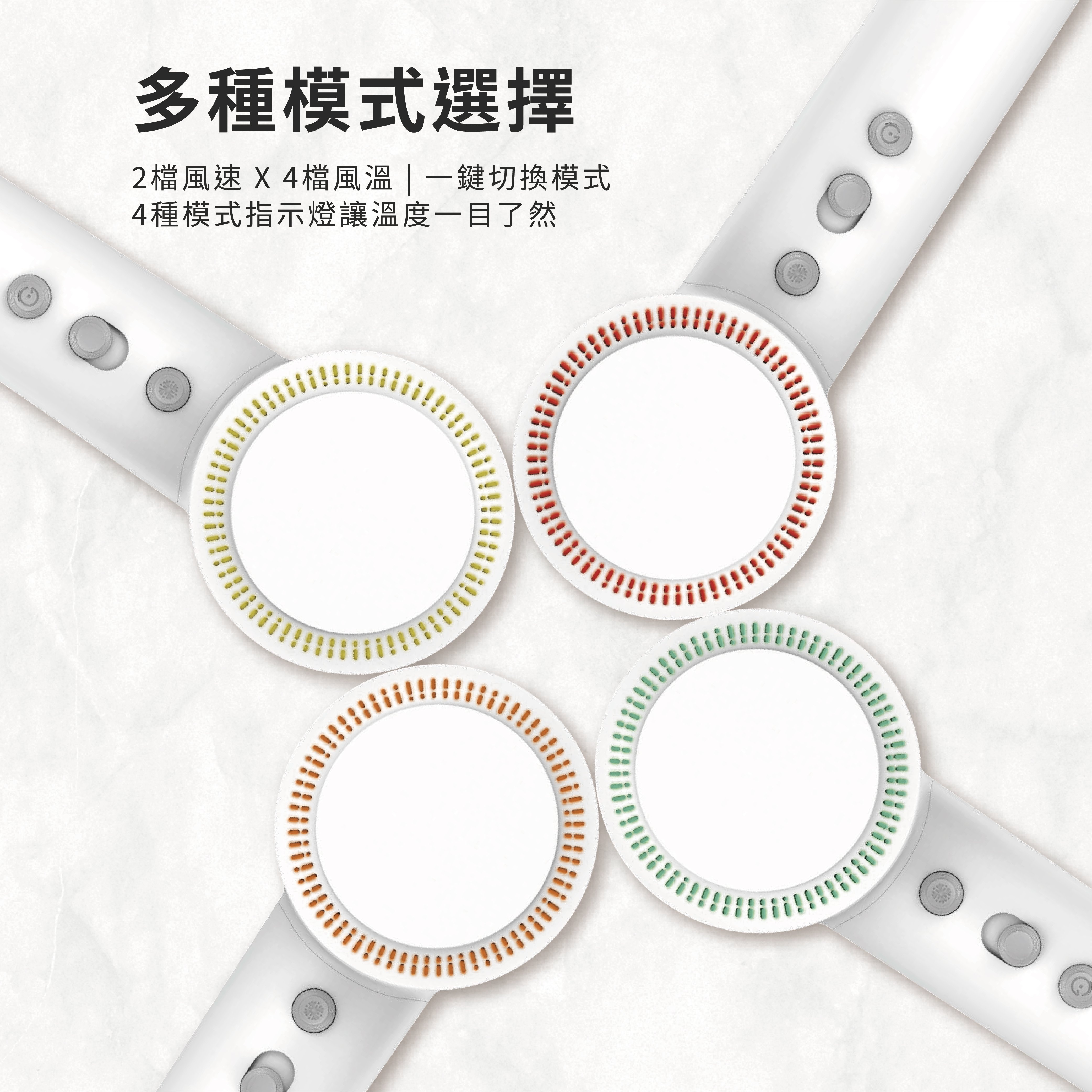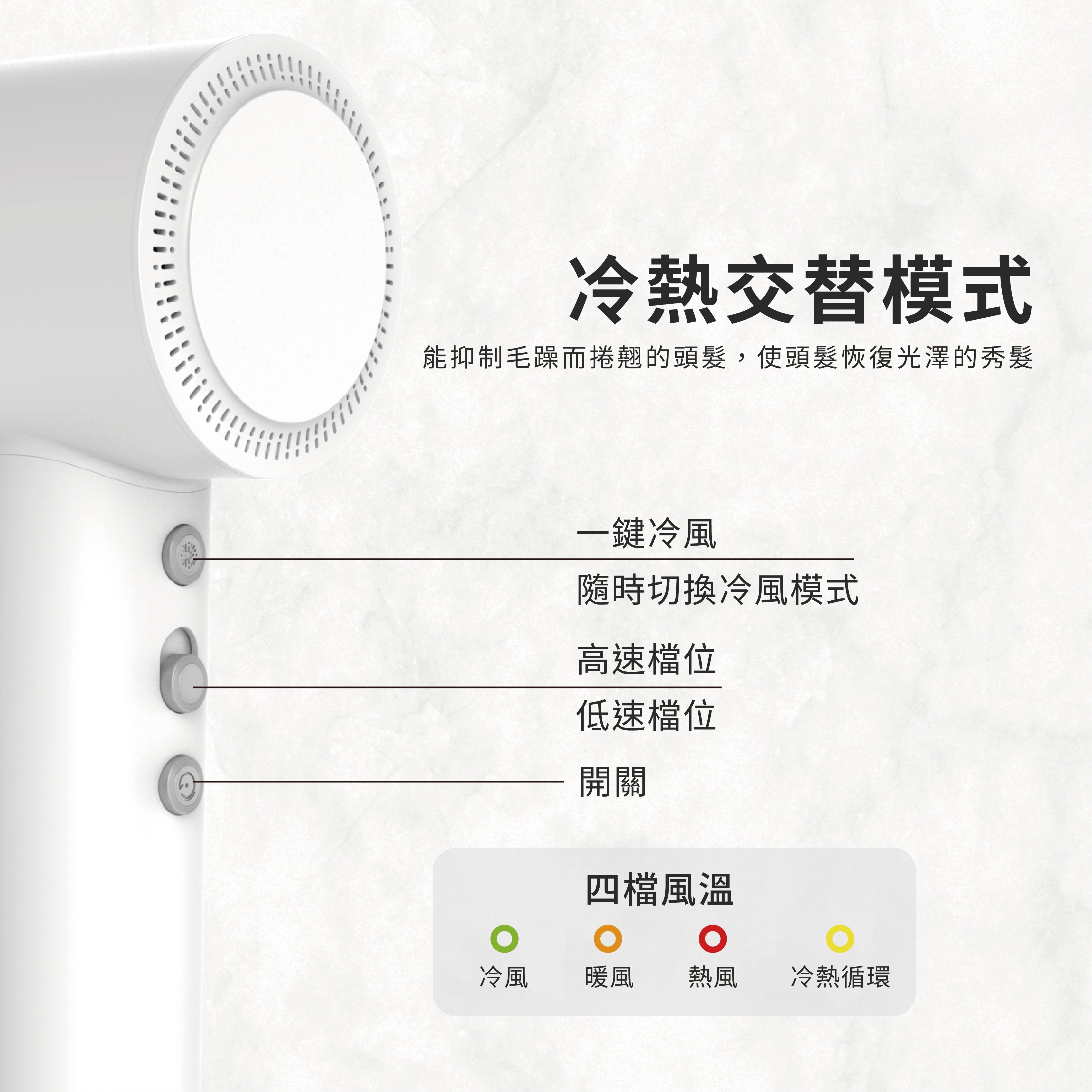國際全電壓設計 AI智能調節電壓 21 m/s大風量加快乾髮 NTC智慧溫控 富含2億負離子,柔順秀髮 智能自清潔模式 0.2mm超密濾網,防止吸入灰塵和頭髮 54.2分貝,輕音不打擾 360度磁吸式風嘴,一吸就牢,輕鬆更換