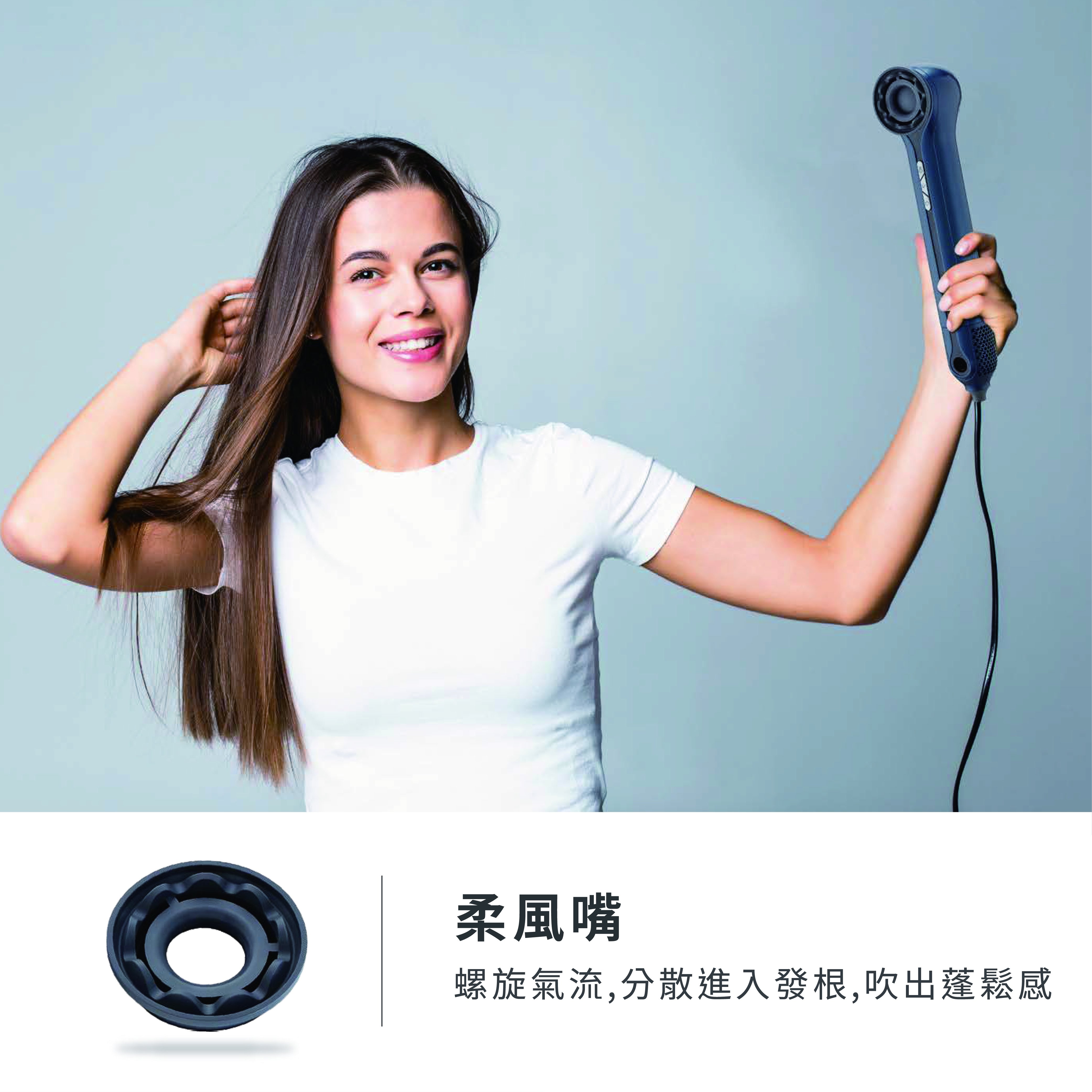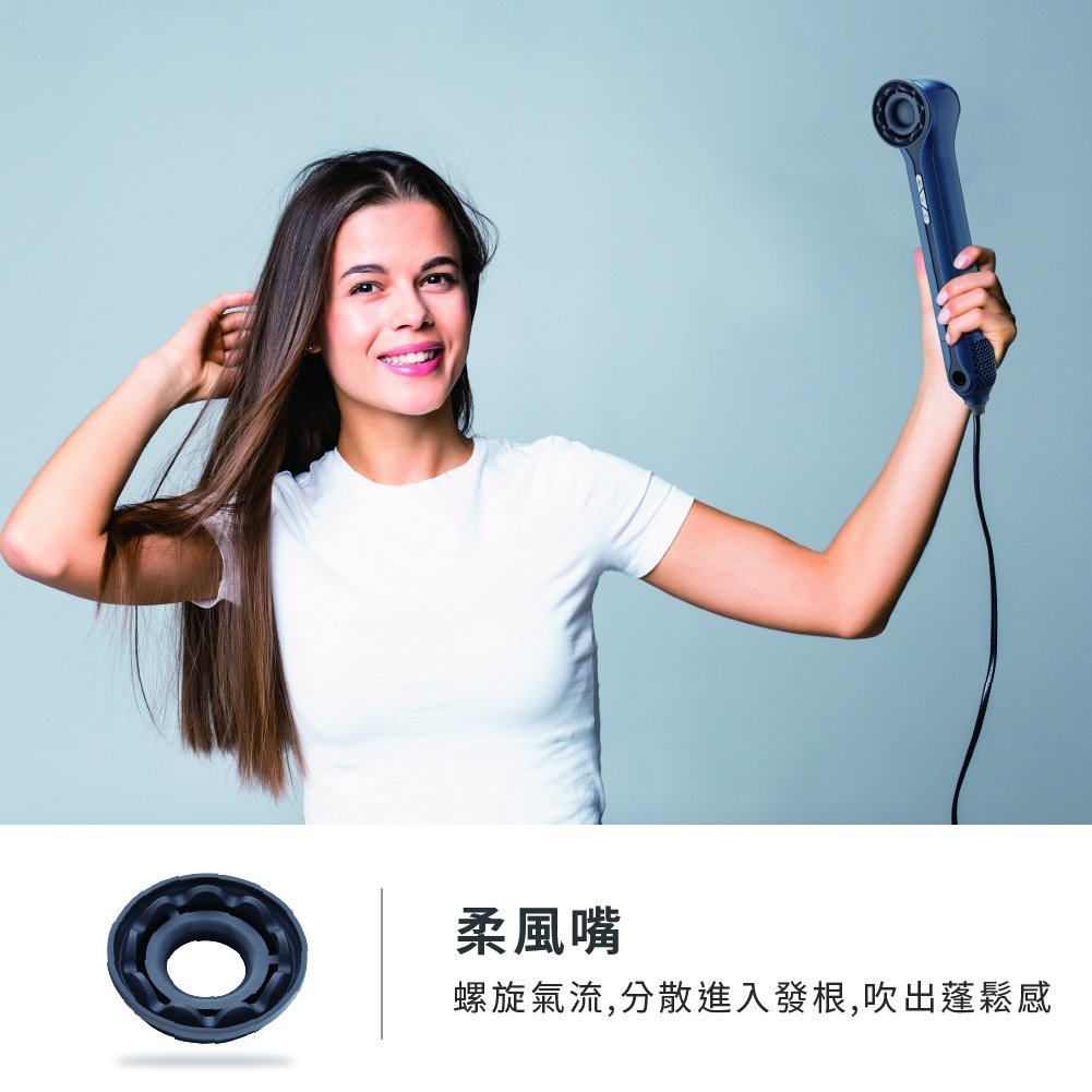柔風嘴螺旋氣流分散進入髮根,吹出蓬鬆感