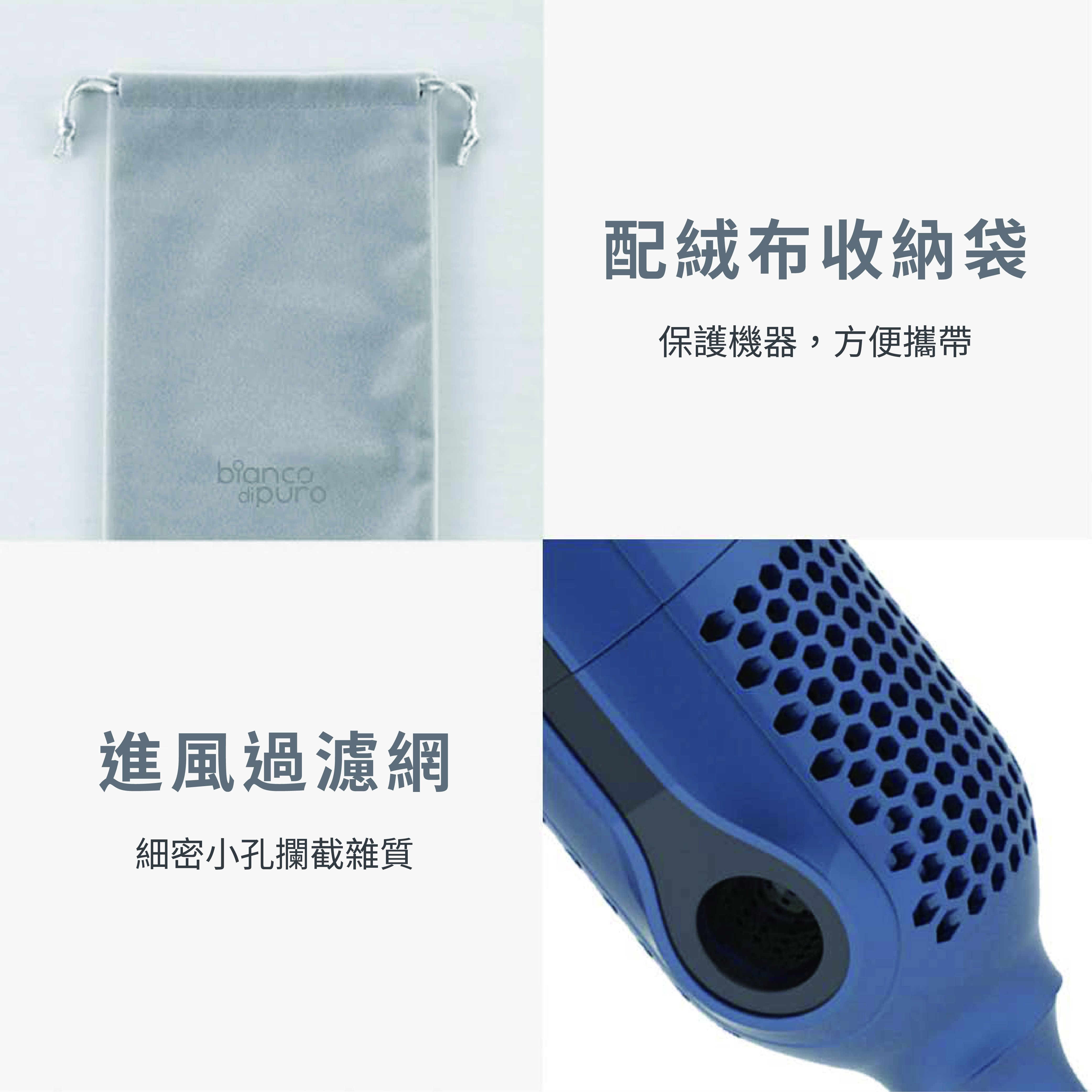 配件:配絨布收納袋 . 集風嘴 . 柔風嘴