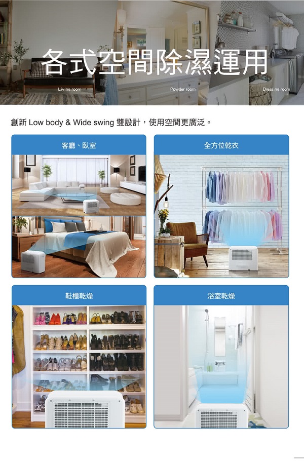 除溼能力:16.5L/日(27度 60%RH)/水箱4LLow boby低機身設計方便收納又美觀