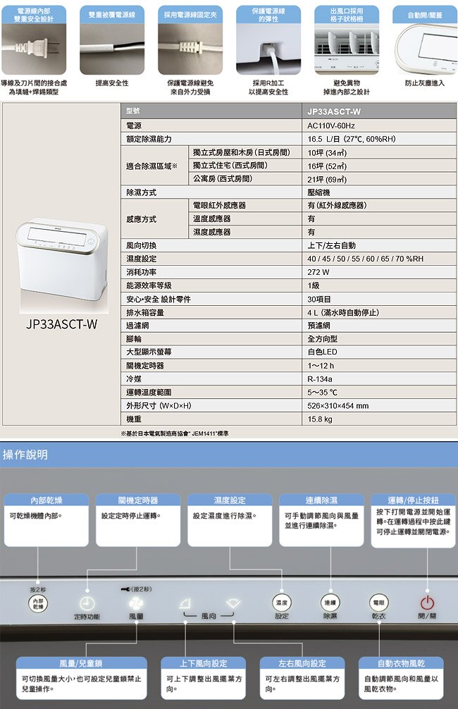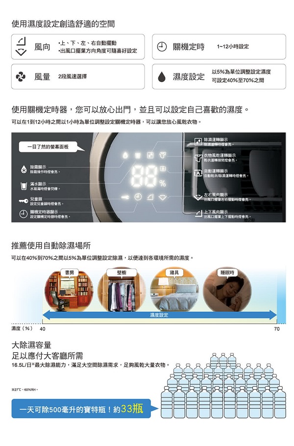 內部乾燥功能/兒童安全鎖/連續除溼功能