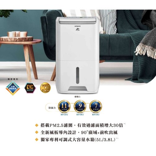 Hitachi 日立9L 全覆式PM2.5濾除高效DC馬達除濕機RD-18FJ60