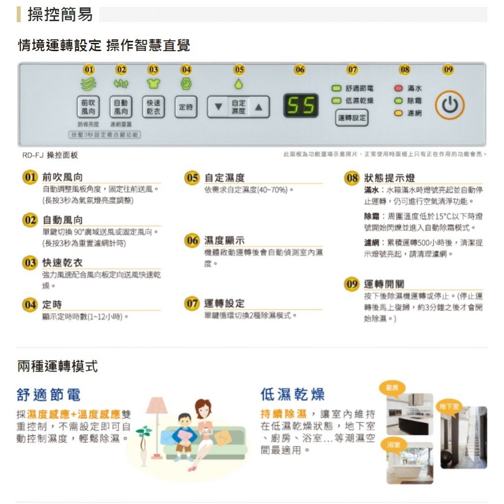 PM2.5濾網 可調節式水箱容量 功能情境顯示燈 舒適節能 快速乾衣