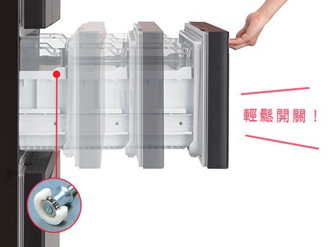 高科技藏鮮,美味好享受,三菱電機高品質低溫科技,讓您簡單留住美味,超冰保鮮/微凍易切瞬冷凍//鮮脆水潤蔬果室輕鬆就上手,方便好使用,貼心3順手設計,讓您使用順心如意,開門順手-多方開門/擺放順手-伸縮層架/製冰順手-超淨清冰