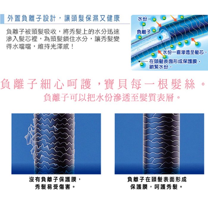 負離子,讓頭髮保濕又健康三段溫度(冷、暖、熱)