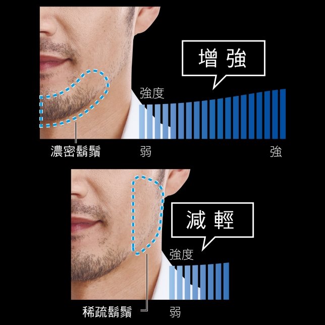 AI智慧感應技術 - 233次/秒偵測鬍鬚濃密度、自動調整剃除力道減輕肌膚負擔