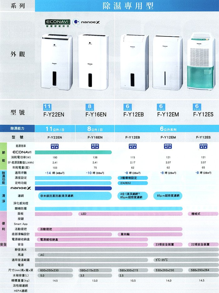 Panasonic 國際牌8L ECONAVI+nanoeX 除濕機F-Y16EN