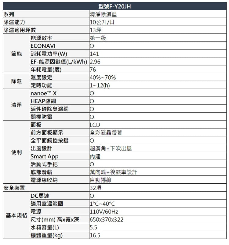 Panasonic 國際牌10L ECONAVI濾PM2.5清淨除濕機F-Y20JH