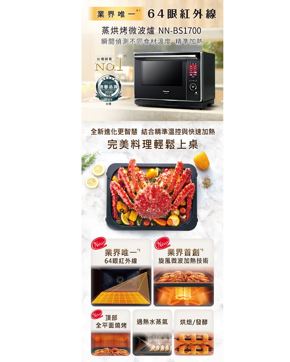 Panasonic 國際牌30L平台式變頻蒸烘烤微電腦微波爐NN-BS1700