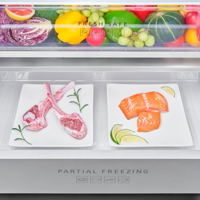 無邊框霧面玻璃設計冷凍室 LED 照明搭載