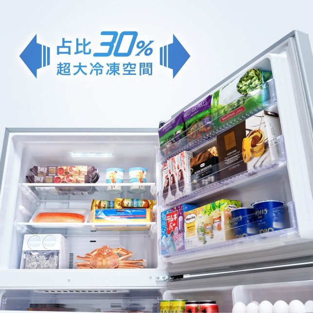 冷凍室大容量設計,業界最大,冷凍室占比 (30%)蔬果室大容量設計,大容量 蔬果放更多