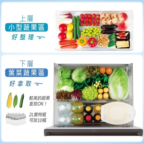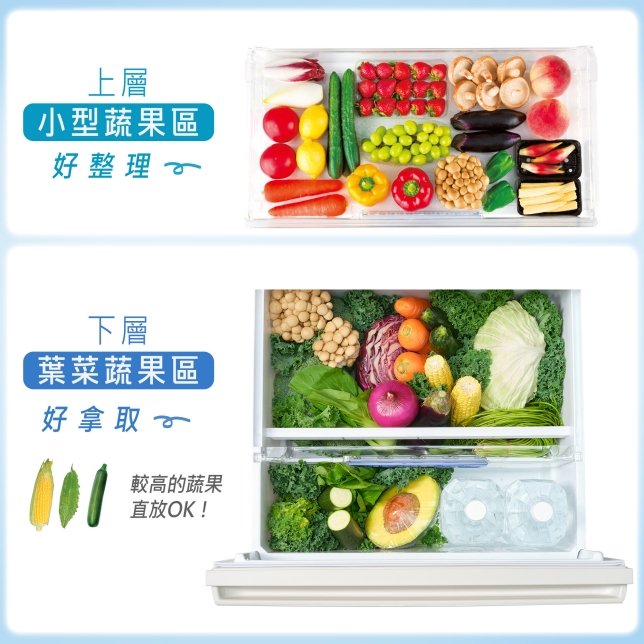 容量:502L,冷藏室260L、製冰室17L、新鮮急凍結*28L、冷凍室92L、蔬果室*105L
