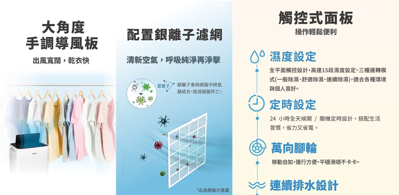 除濕量(27°C RH60%):6公升/日