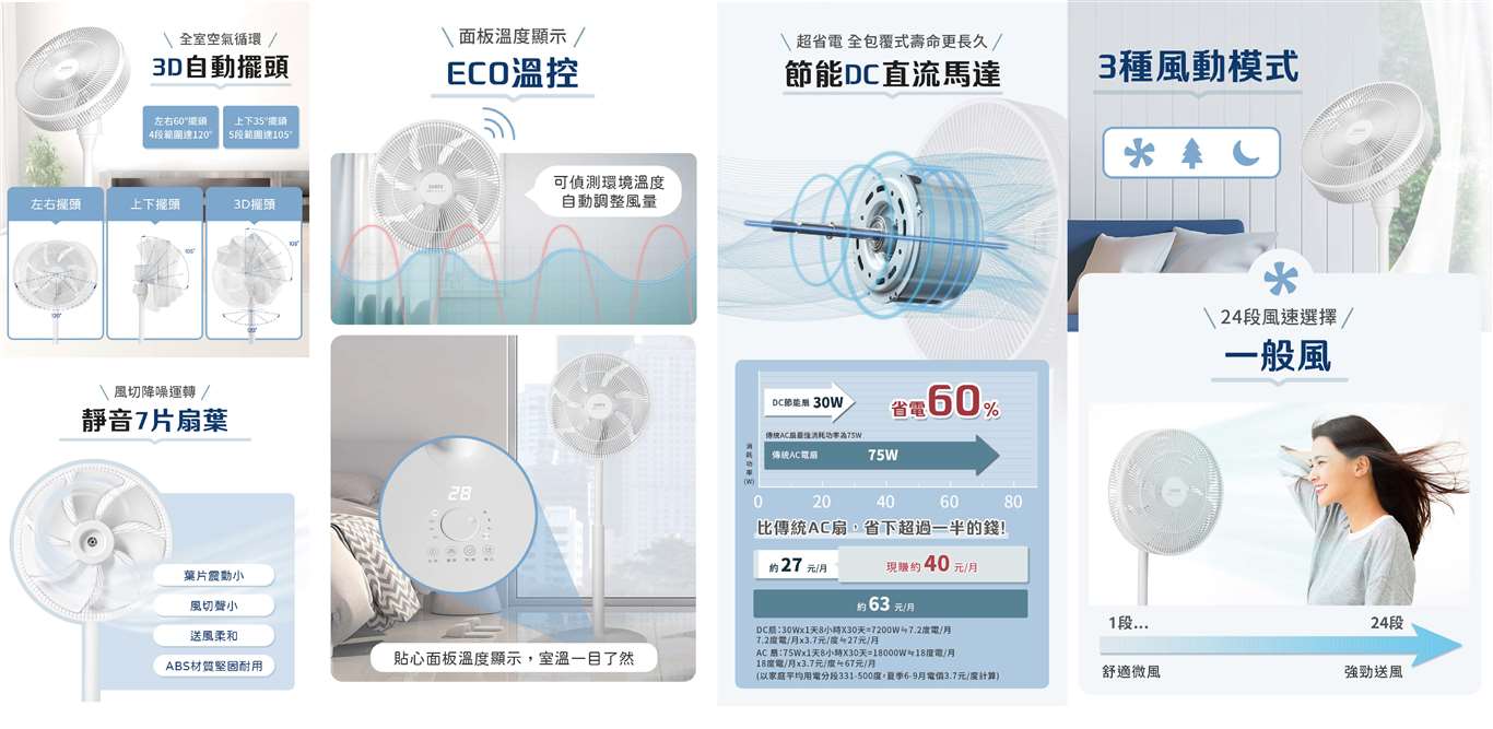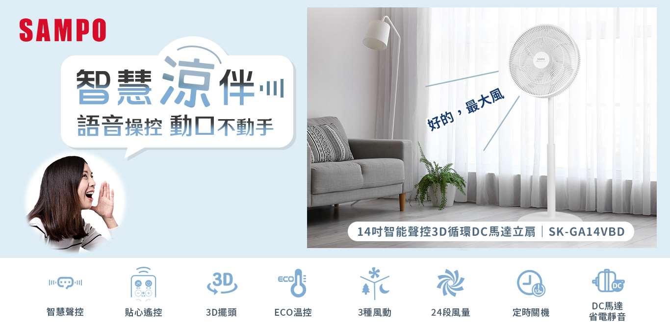 智慧聲控功能,動口不動手3D遙控自動擺頭,全室空氣循環