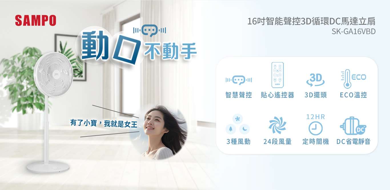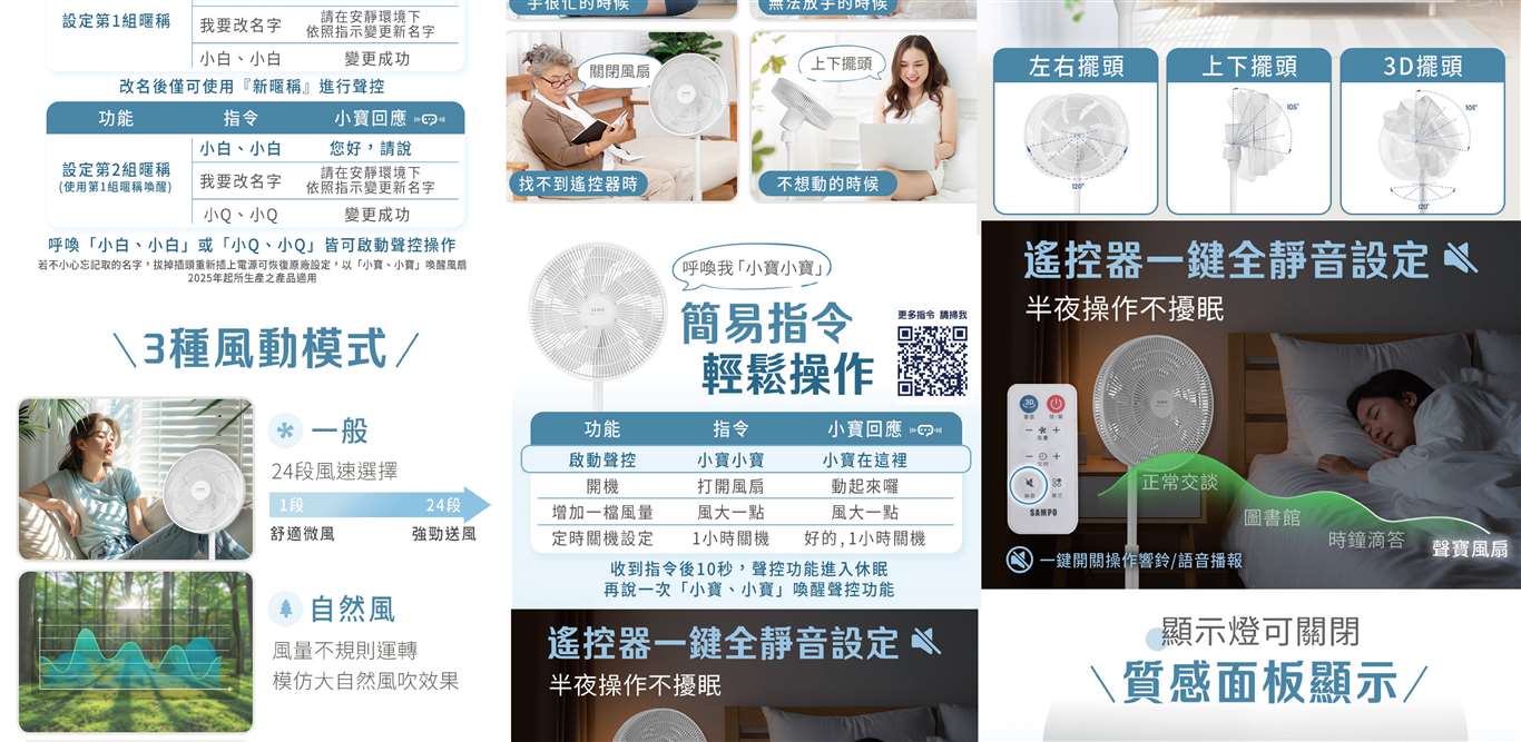 智慧聲控功能,動口不動手3D遙控自動擺頭,全室空氣循環
