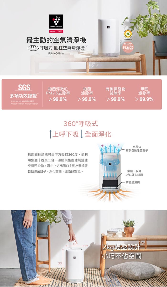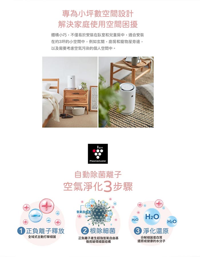 適用坪數:約 ~3坪搭載夏普獨家高濃度自動除菌離子7000
