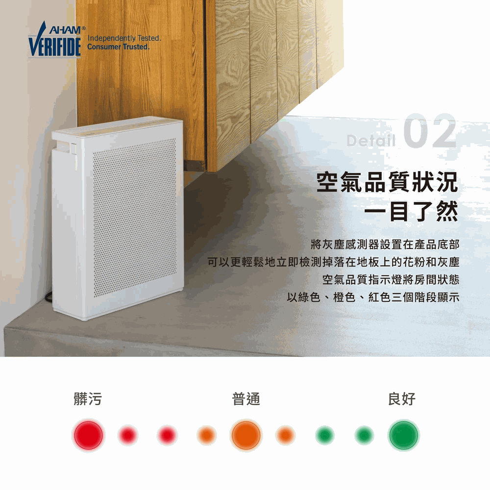 靜音模式19dB/最大風量運轉44dB 超輕巧體積,放置不困擾 高性能集塵脫臭一體型濾網 薄型12.5cm超輕巧體積,徹底清淨8坪空間。 最大風量運轉僅44dB,靜音模式19dB超安靜。 「正面面板」全面高效吸引清淨。 只需更換「高性能集塵脫臭一體型濾網」輕鬆清潔。 空氣感測器隨時檢知室內灰塵狀況。 「DC直流馬達」24小時365天有效節能運轉。