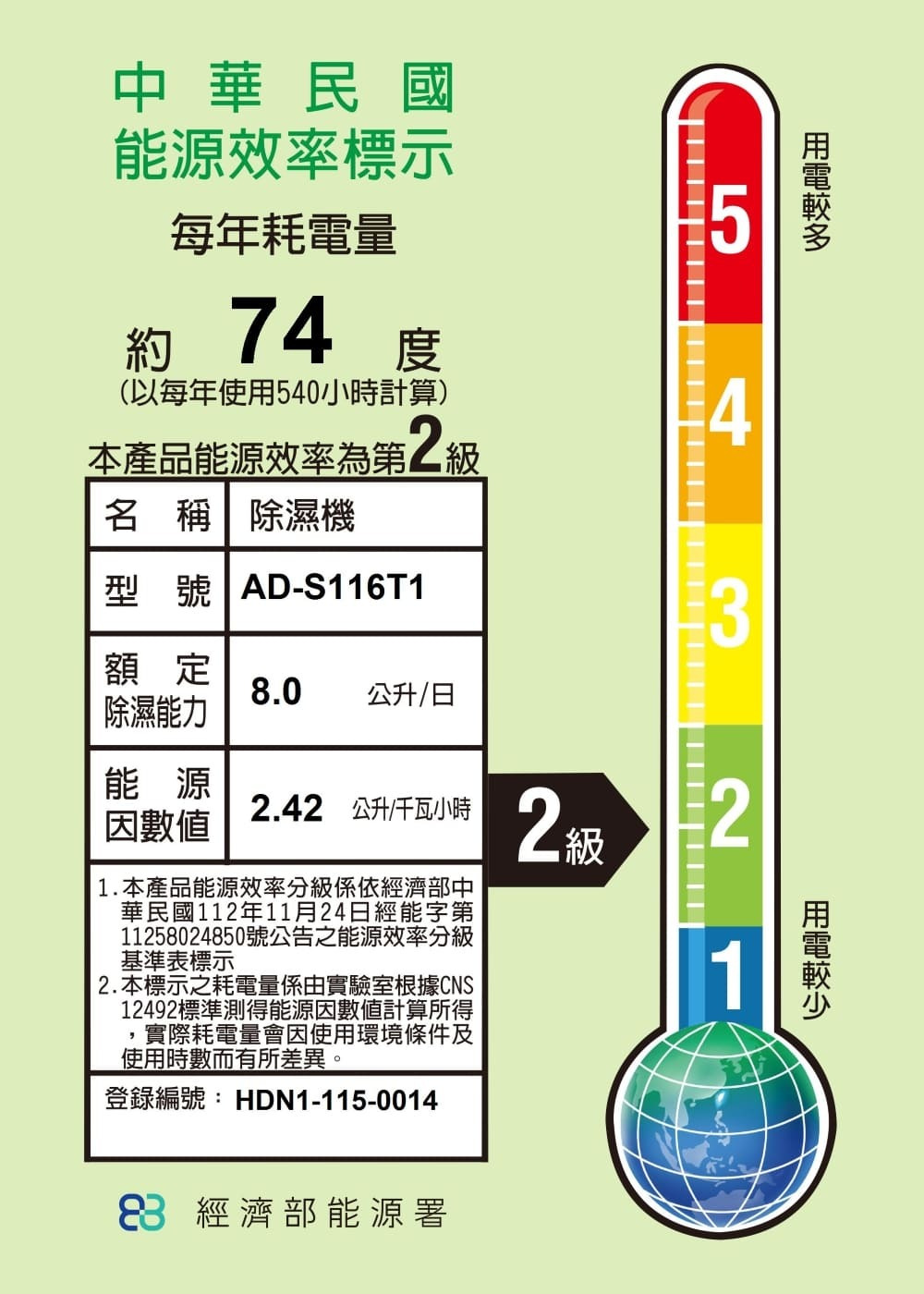 除濕能力:8L/D