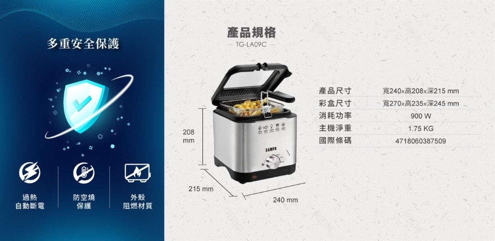 商品尺寸:240(寬)x208(高)x215(深)mm