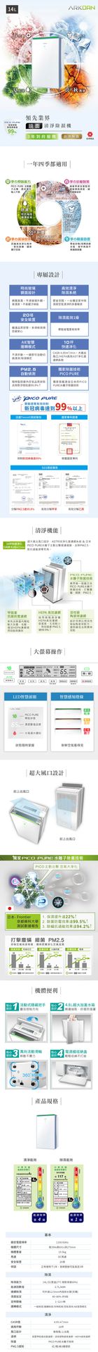 額定除溼能力:14L/日 (室溫27℃/相對濕度60%)