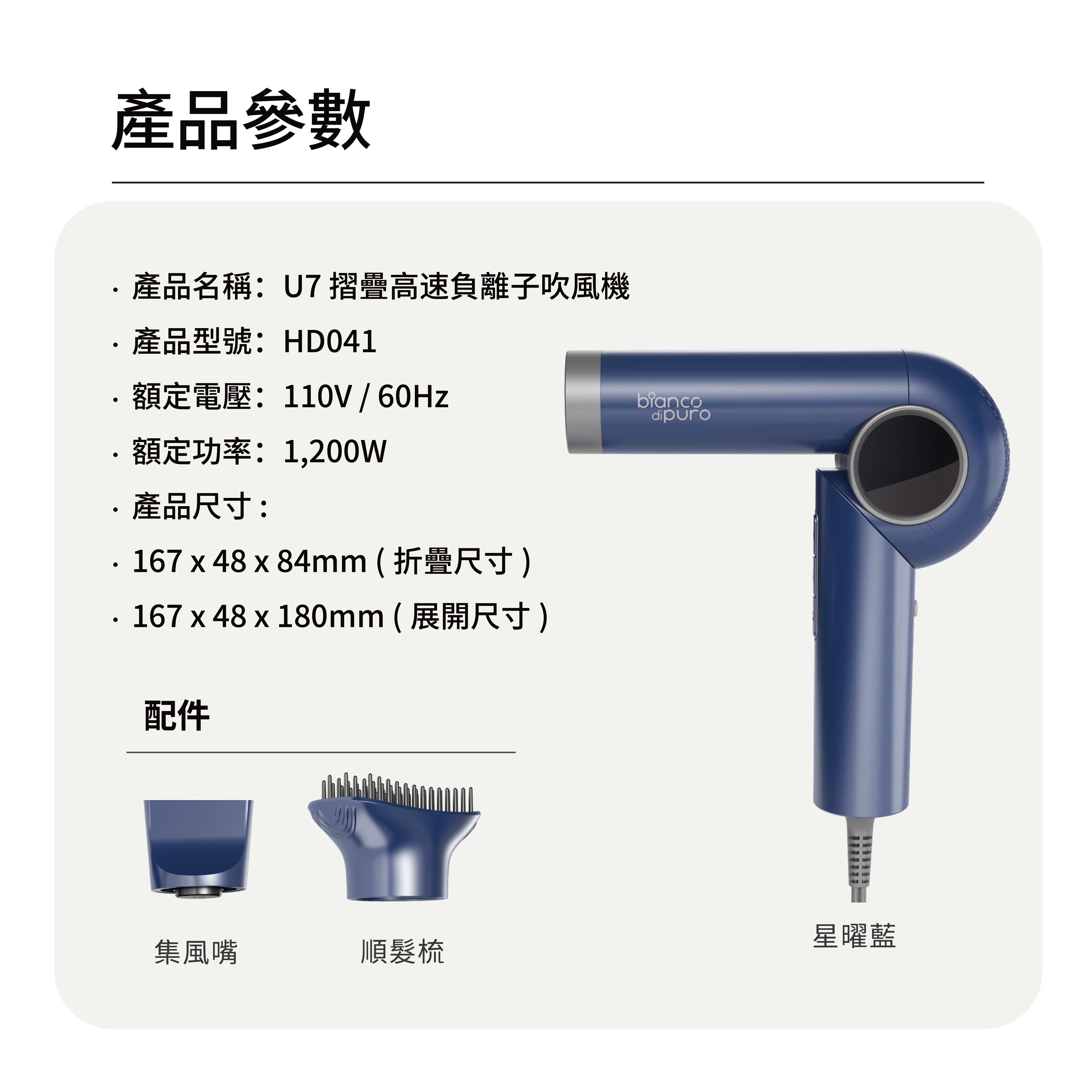 Bianco di puro 彼安特U7 摺疊高速負離子吹風機HD041