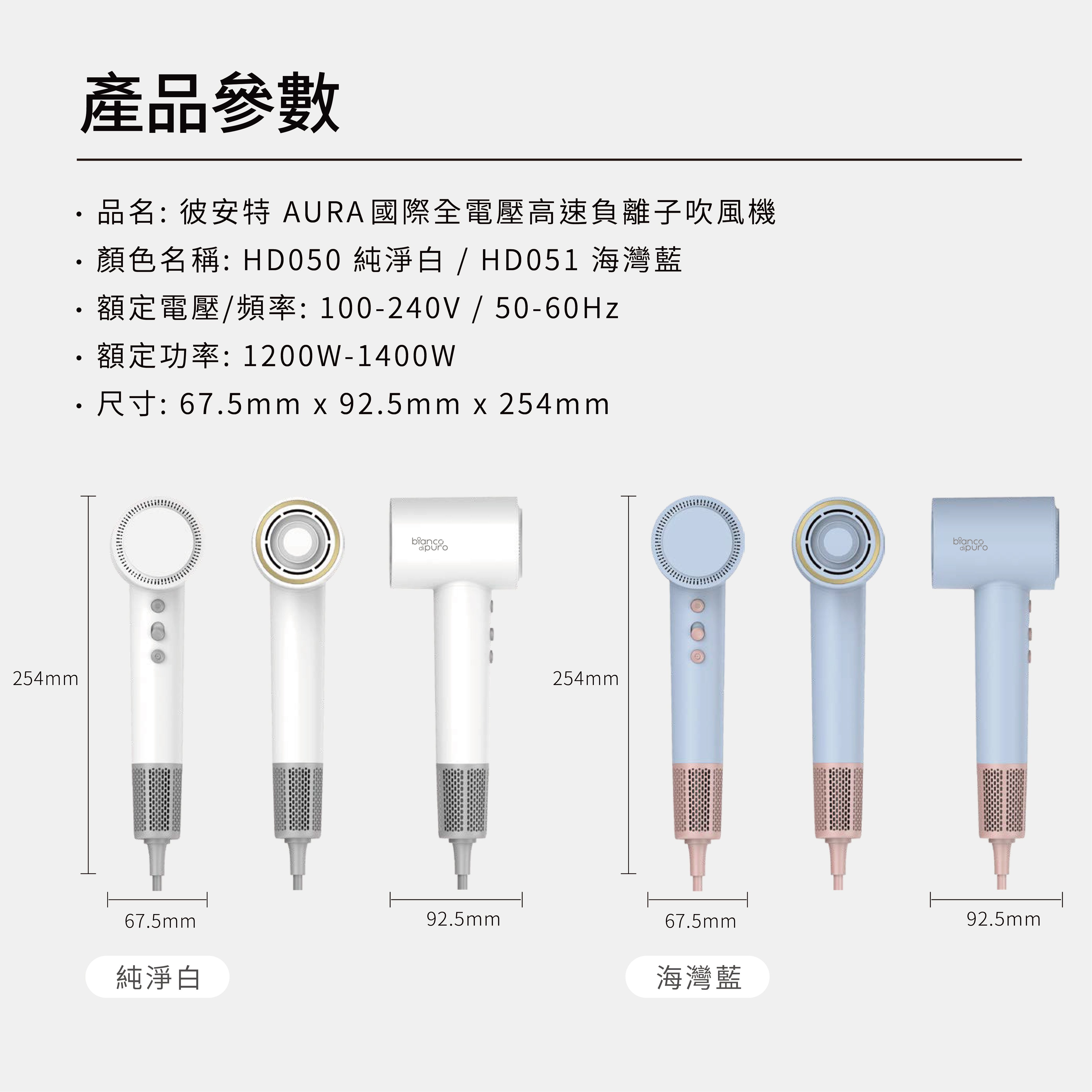 Bianco di puro 彼安特AURA 雙電壓高速負離子吹風機HD050