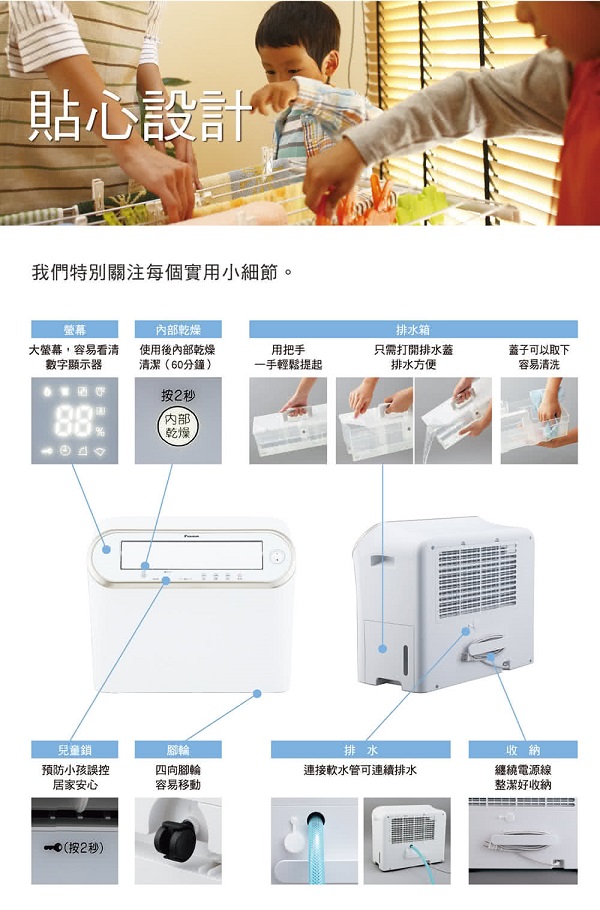 內部乾燥功能/兒童安全鎖/連續除溼功能