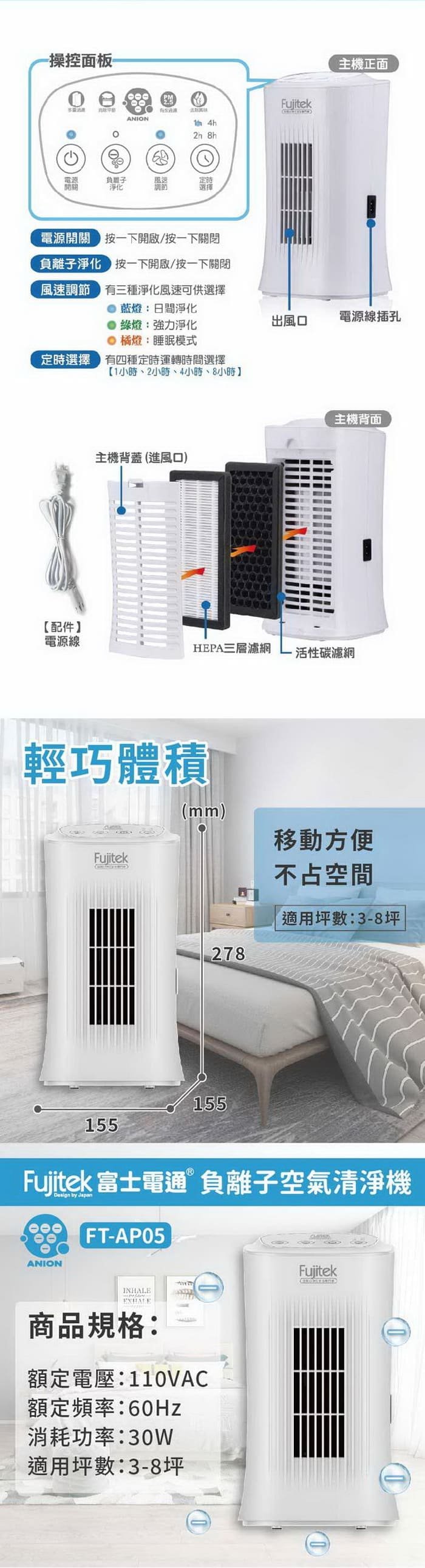 【富士電通】負離子空氣清淨機型號:FT-AP05
