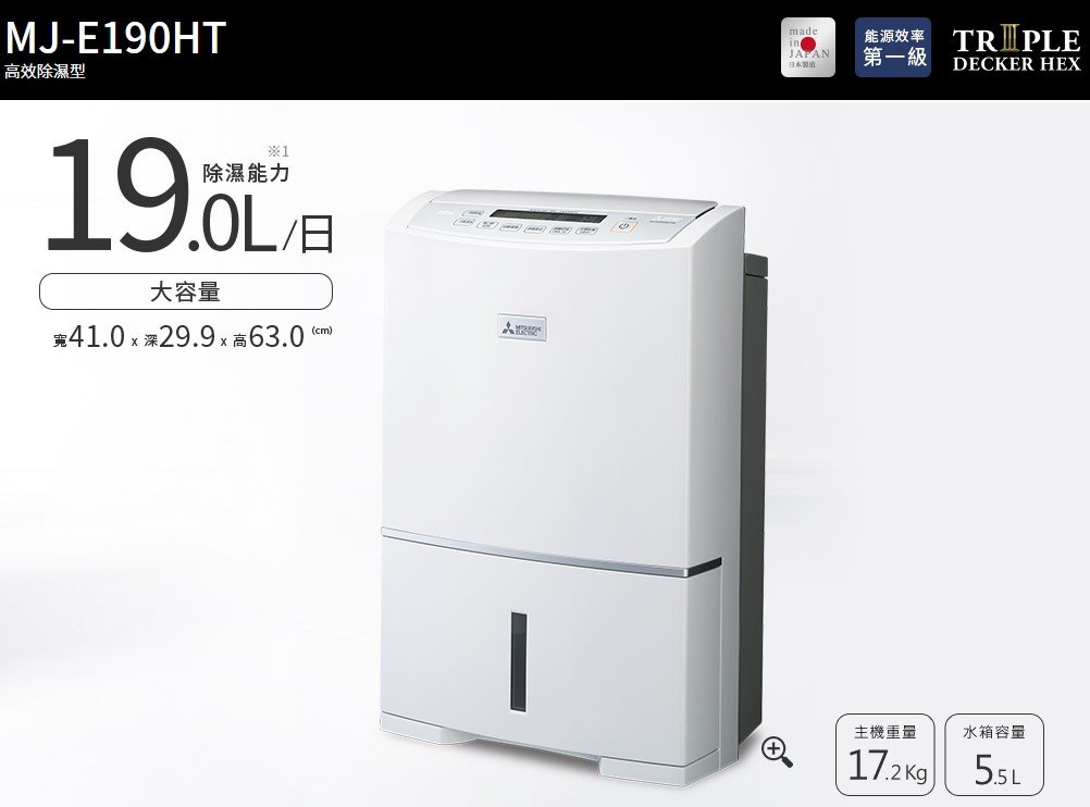 MITSUBISHI 三菱日製19L 濾PM2.5除濕機MJ-E190HT-TW