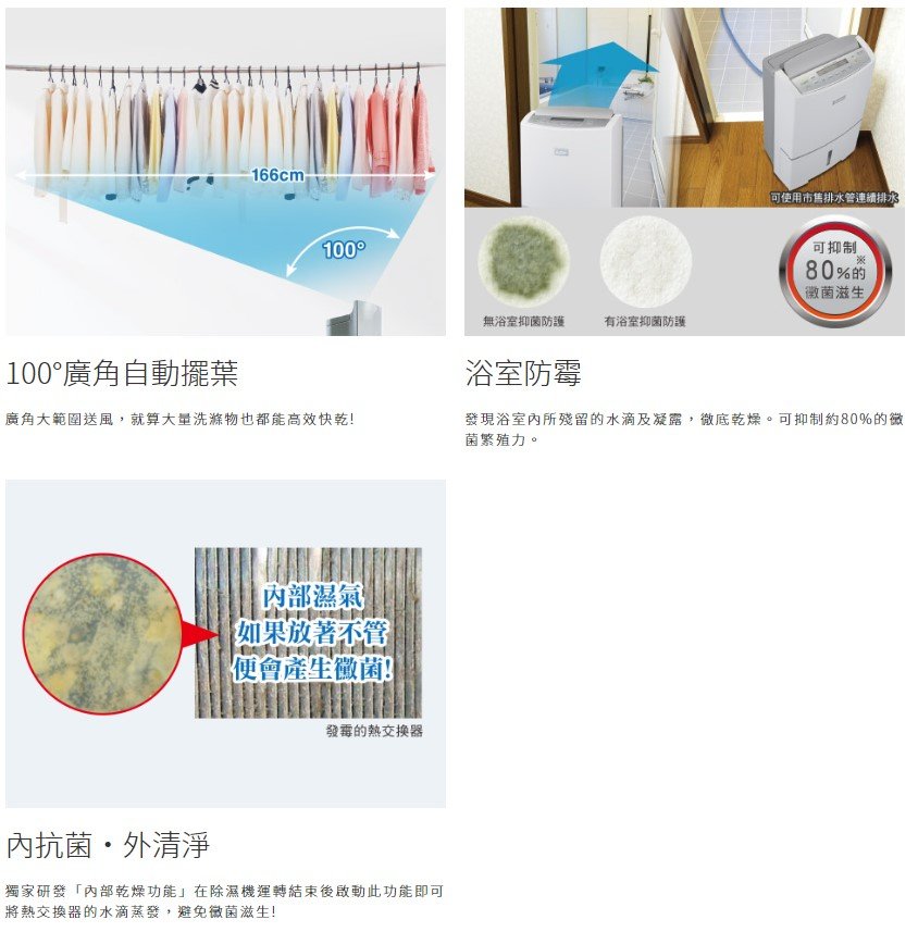 除濕能力19L/日 創新三重除濕系統 凌駕業界最頂級「除濕力」與「省電力」 不止乾爽還要更乾淨 大量衣物也能迅速對應 超廣角強力送風 輕鬆乾衣