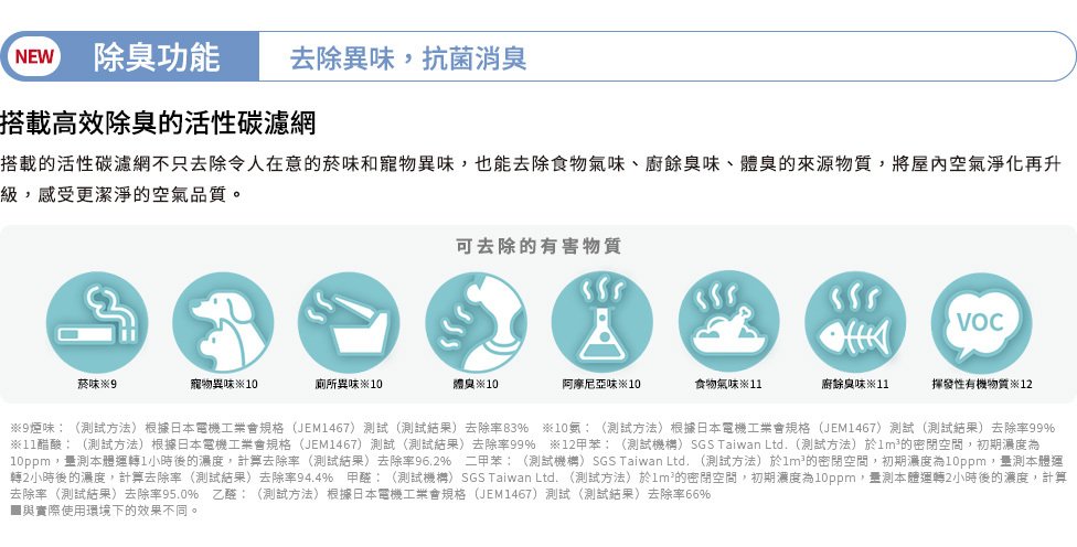 搭載HEPA+活性碳濾網 維持室內空氣好品質 - 搭載HEPA濾網+活性碳濾網,連細微的灰塵及病毒都能有效去除抑制,並有效去除異味。