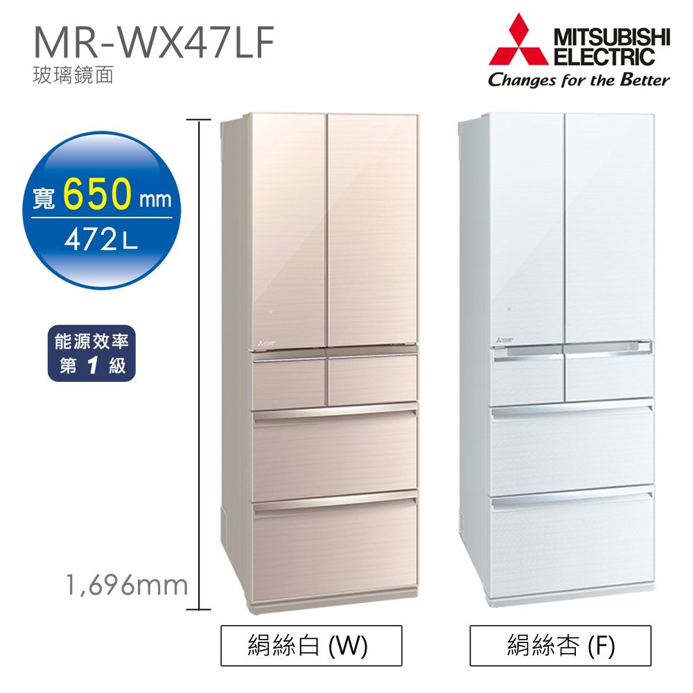 MITSUBISHI 三菱日製六門 472L 變頻玻璃鏡面冰箱MR-WX47LF