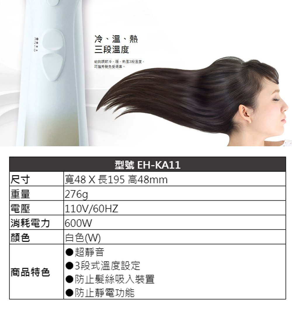 整髮梳單件式冷、溫、熱三段式溫度選擇