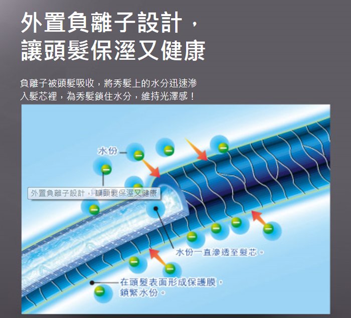 負離子,讓頭髮保濕又健康三段溫度(冷、暖、熱)