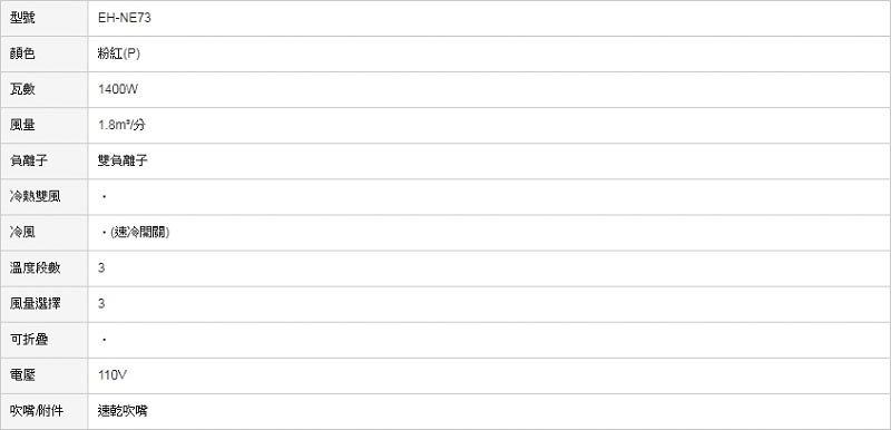 Panasonic 國際牌雙負離子吹風機EH-NE73