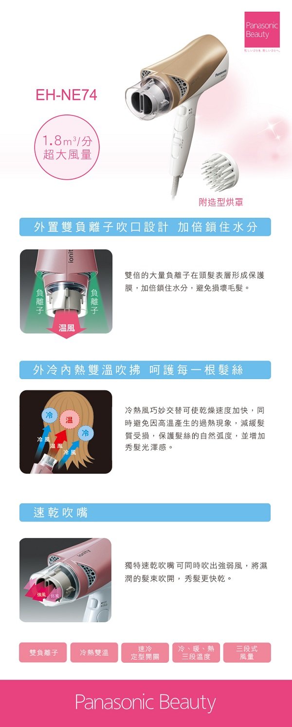 Panasonic 國際牌雙負離子吹風機EH-NE74