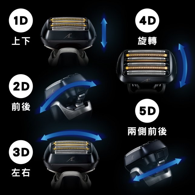 6枚刃系統-新極薄深剃刀刃 - 剃淨效率提升50%密著5D浮動刀頭