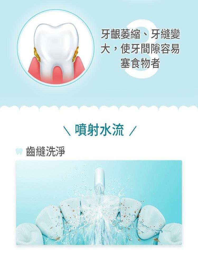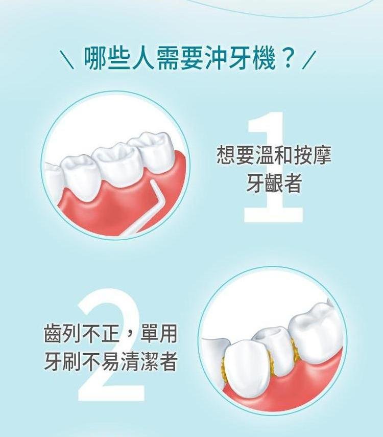 刷牙並不能完全清除齒垢,牙縫的死角,只有利用沖牙機才能真正保持牙齒清潔。使用沖牙機沖洗牙縫、按摩牙齦,讓牙齒更清爽