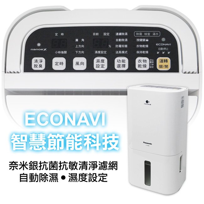 Panasonic 國際牌8L ECONAVI+nanoeX 除濕機F-Y16EN