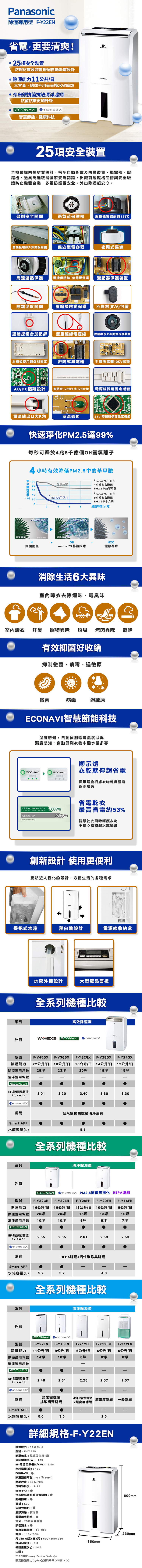 Panasonic 國際牌11L ECONAVI+nanoe X除濕機F-Y22EN