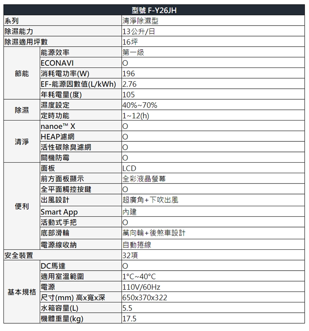 型號:F-Y26JH顏色:白色