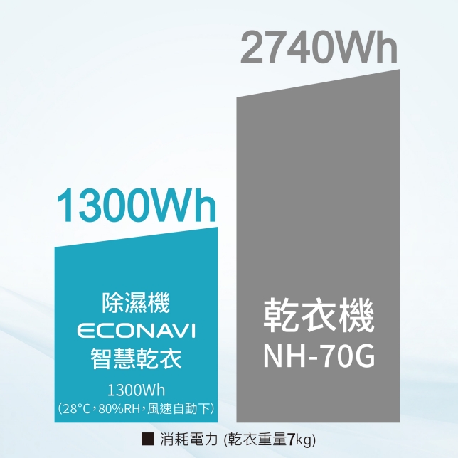 除濕能力 12公升/日(室溫27°C/相對濕度60%) INVERTER變頻雙轉子壓縮機 nanoe™ X 健康科技 ECONAVI智慧節能科技 IoT智慧健康家電 39項安全裝置