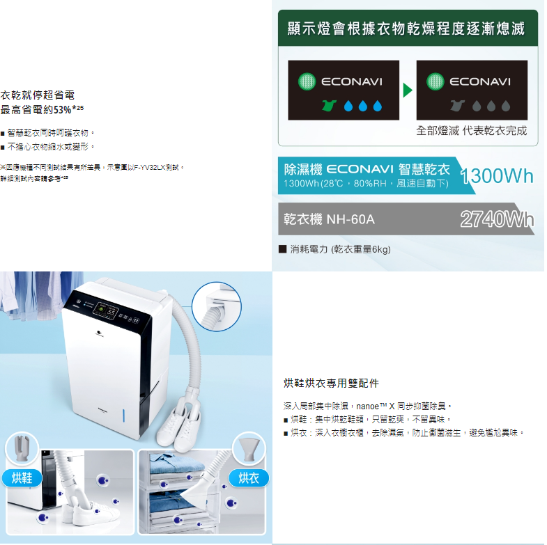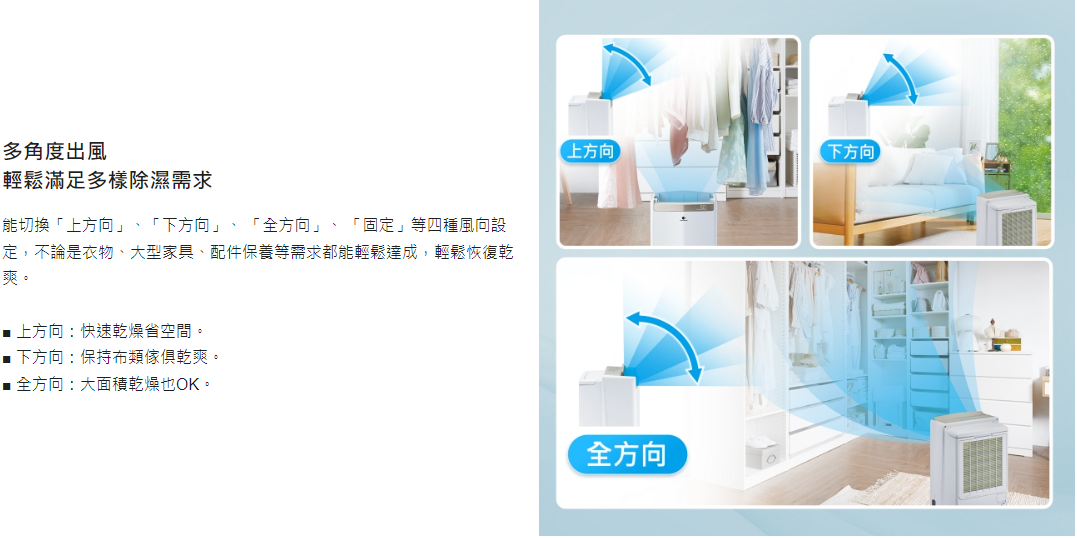 變頻壓縮機+W-HEXS雙重除濕系統 全彩液晶觸控螢幕 HEPA濾網&活性碳濾網 烘鞋&烘衣櫃配件 水箱運轉指示燈(雙色)