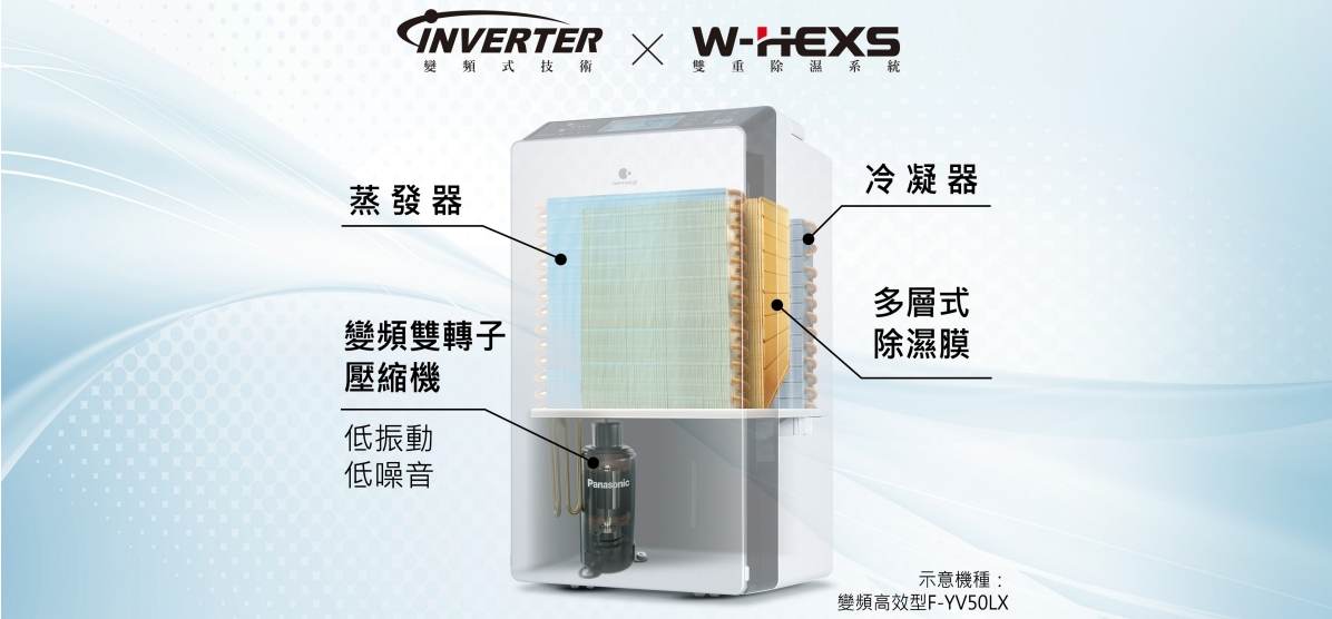 變頻壓縮機+W-HEXS雙重除濕系統全彩液晶觸控螢幕