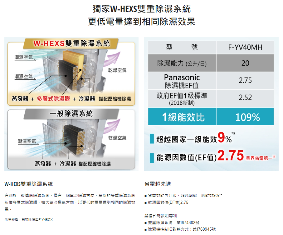 Panasonic 國際牌20L W-HEXS變頻高效微電腦除濕機F-YV40MH
