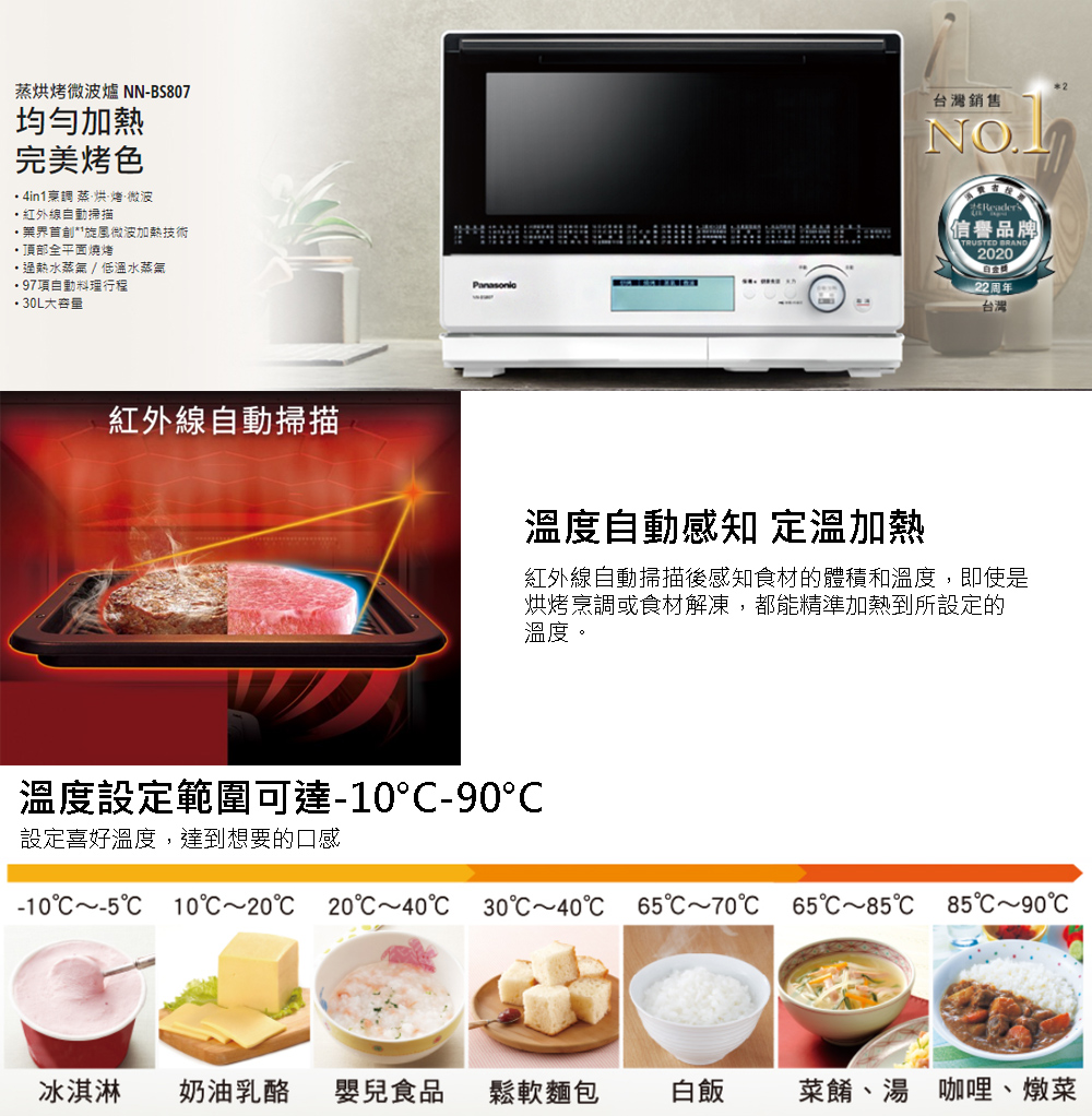 Panasonic 國際牌30L旋鈕平台式變頻蒸烘烤微波爐NN-BS807