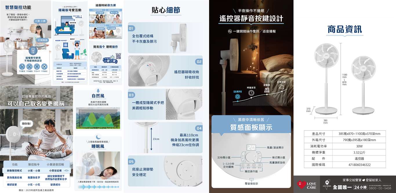 智慧聲控功能,動口不動手3D遙控自動擺頭,全室空氣循環