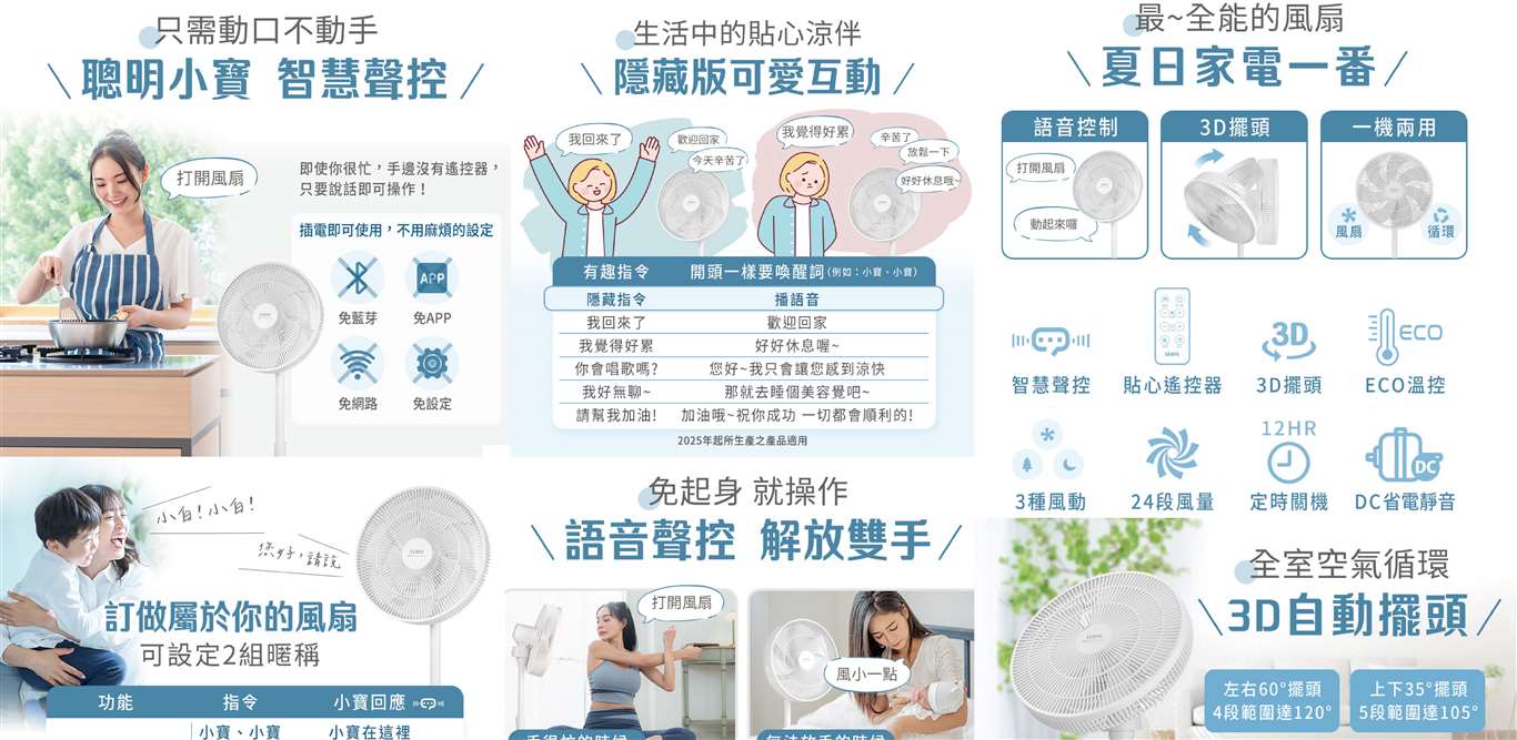 智慧聲控功能,動口不動手3D遙控自動擺頭,全室空氣循環